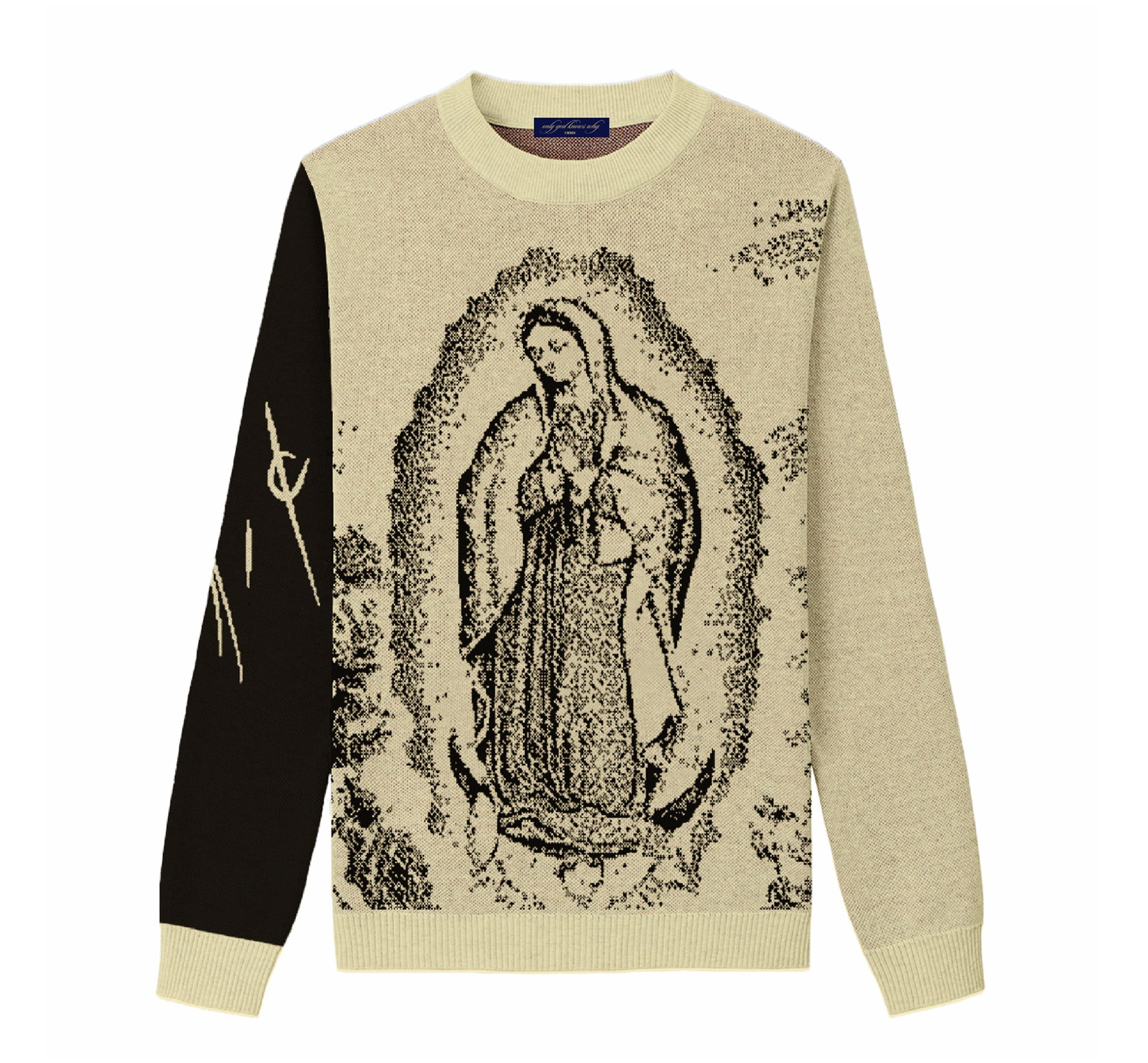 Virgin Mary image on stomach + chest of garment