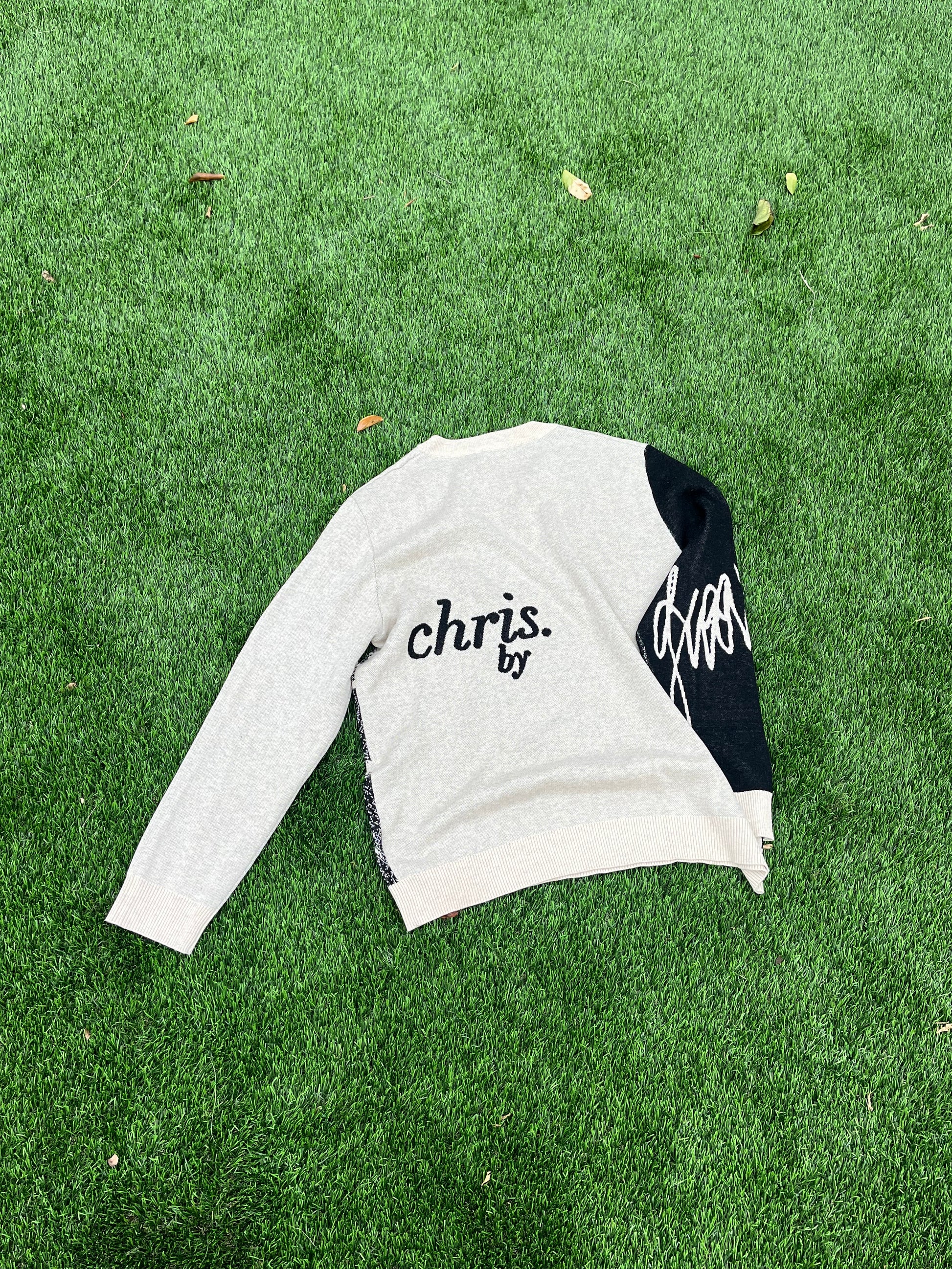 "chris. by" on back of garment